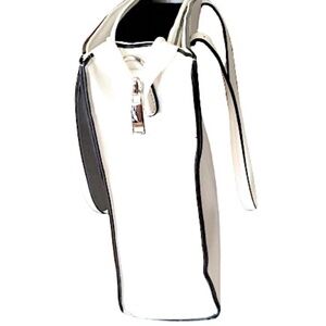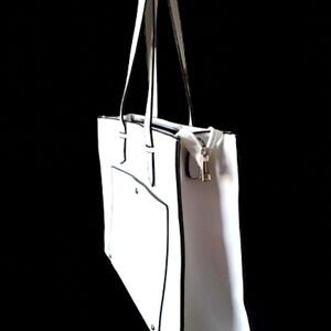 CLAIRE FRANCE White With Black Trim Elegant Large Pu Leather Tote 15"x12.5"x 5"