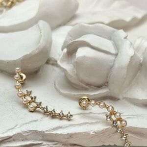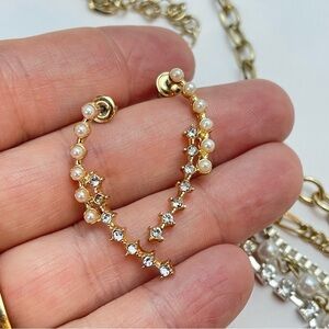 Claire’s Necklace and Earrings Set Multi-Later Chain has pearls, rhinestones, gold and silver tone chains.