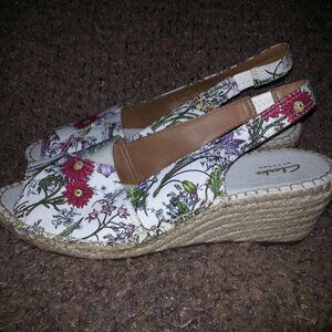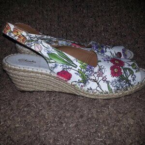 CLARKS ARTISAN-Petrina Rhea-White/Sand Floral Espadrille Wedge-10M-NEW
