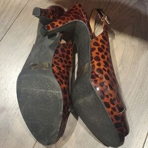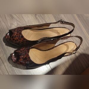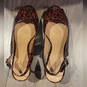 CLARKS Wessex Bria Leopard Patent Slingback Peep Toe Heels