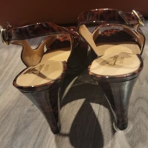 - CLARKS Artisan Wessex Bria Leopard Patent Slingback Heels