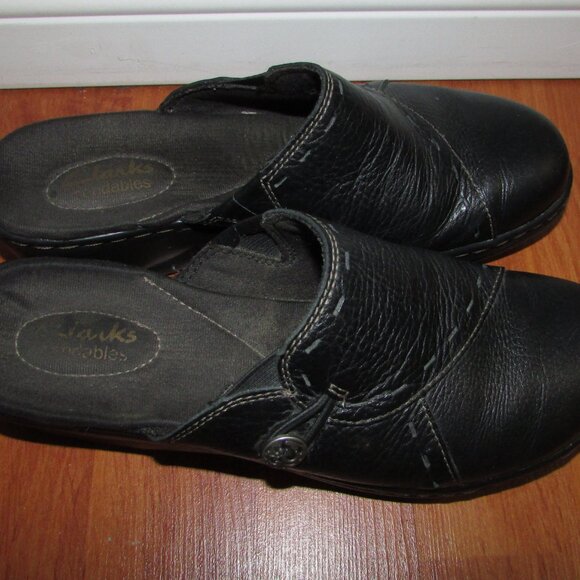 CLARKS Black Leather Bendables Mules - Sz 7