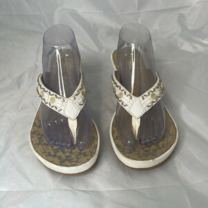 Women’s white Clarks Platform Wedge Thong Sandals.