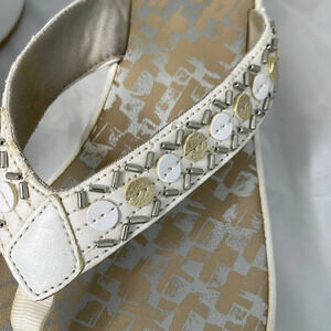 CLARKS Platform Wedge Thong Sandals White Beaded Vegan Leather Boho Size 11