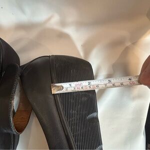 CLARKS Sz 9.5 Ankle Strap Velcro Closure Wedges Small Platform Black Leather Shoes Elegant black leather shoes with a comfortable fit. Perfect for any occasion. Dress up or down. Comfortable and lovely.