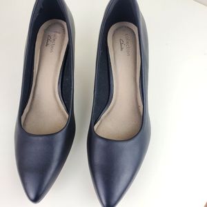 CLARKS Womens Linvale Leather Pointed Toe Classic Size 9.5 M Black Leather