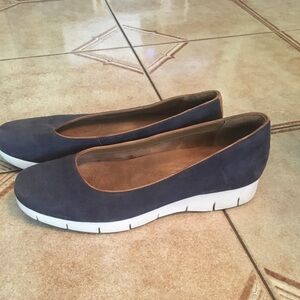CLARKS suede slip ons
