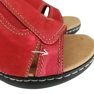 Clarks sandals, red leather sandals, comfort shoes, slingback wedges, summer sandals