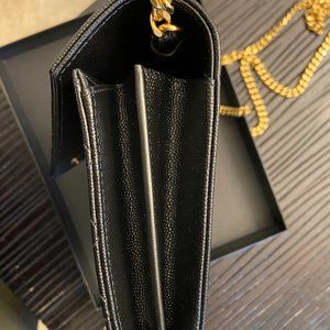Selling this beautiful wallet purse with heavy gold chain. It has been out of the cloth bag and box two times, and is in pristine, brand new condition. I have been back and forth as to whether I sell this or not, but I am now selling, as I need funds for schooling. But I am not selling this for less than what I'm asking. If it doesn't sell, I'm ok with that. It is a gorgeous purse, I do love it.