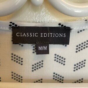 Classic Editions Frilly Top, White and Black Patterned print, with shiny Beads design, no flaws, Size Medium,