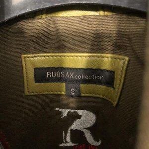 CLASSIC LUXURY RUDSAK PEACOAT WITH LEATHER DETAILING. SIZE SMALL