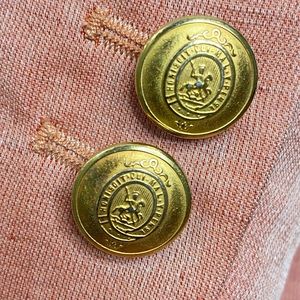 Feel like a million dollars in the Luxurious Windsor Blazer in flax and linen. Has a nice sheen to it and a great shape! Beautiful gold buttons with an emblem on them.