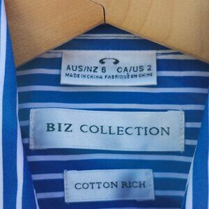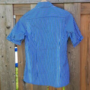 CLASSY BIZ Collection Button Down Navy and White Stripe Shirt Women's Size 2