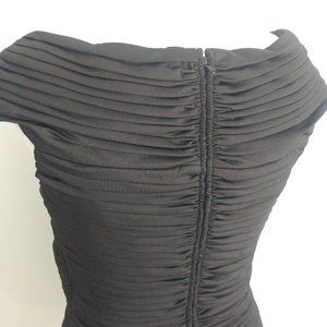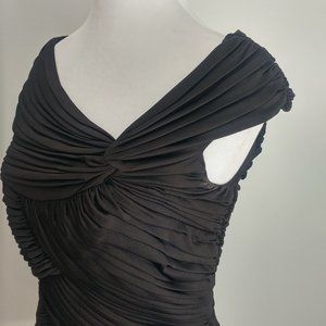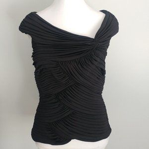 CLASSY & SASSY Formal Wear Black Blouse Ruched Asymmetrical Neckline Substantial