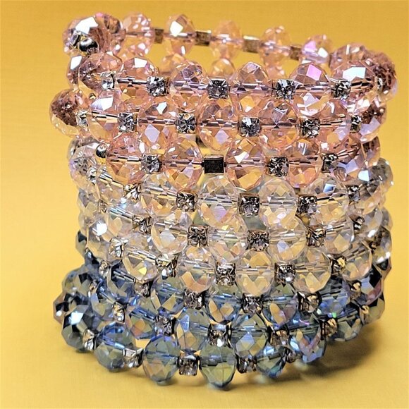 Wrap Around Sparkling Clear Faceted Glass Crystals on a wrap around coil bracelet
