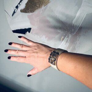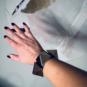 3. Black/Gold Cuff - good condition, faux leather, statement piece. Such a fun piece! Three adjustable sizes. Very cool, oversized gold accents.