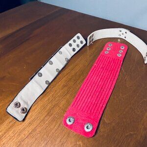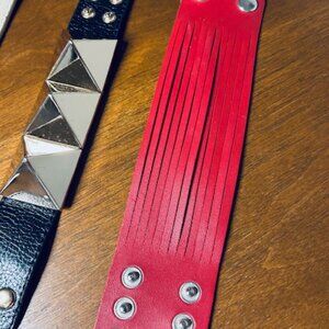 A pack of 3 very cool adjustable leather cuffs - throw a little punk in to your outfit! (One of three is faux leather) I've worn all of these cuffs a few times each. Love them!