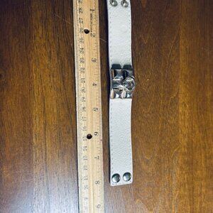 2. Cream/Beige Cuff - Good condition, gold accents, two adjustable sizes. Real leather.