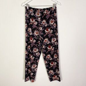 CLEARANCE - Club Monaco Black Floral Print Pull On Elastic Waist Dress Pants