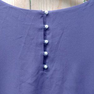 Lovely purple cocktail dress with tiered layers and a chic button closure at the back. Excellent condition.
