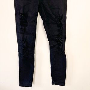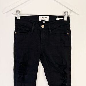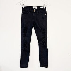 CLEARANCE - Frame Denim Le Skinny de Jeanne Distressed Black Jeans in Film Noir