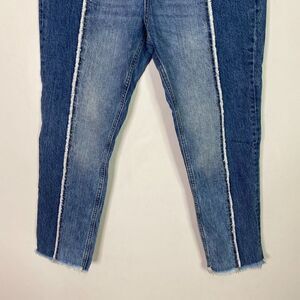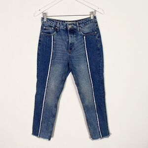 CLEARANCE - Topshop Moto Two Toned Straight Leg Raw Hem Button Fly Jeans