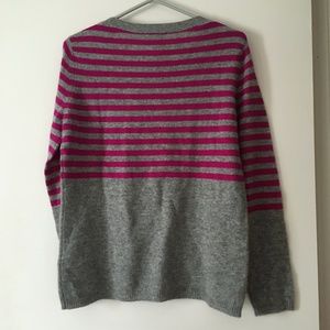 CLEMENTS RIBEIRO POP 100% Cashmere Grey + Fuchsia Stripe Crew Sweater L