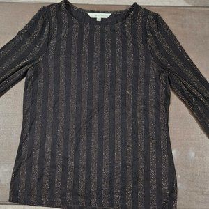 CLEO Black & Gold Sparkly Striped Sheer Blouse. Size Petite Small