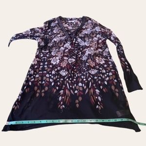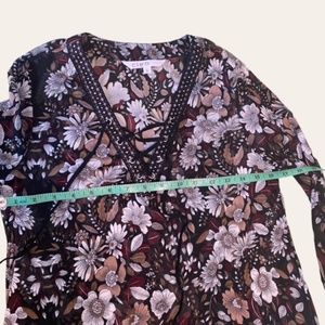 CLEO Floral Pattern Sheer V-Neck Women Tunic Blouse Size M