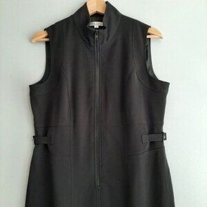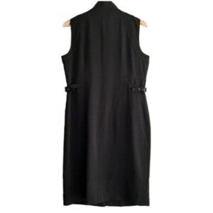 • Sleeveless high neck dress in black with front zip detail and adjustable waist buckle details. Front zipper closure. Fully lined.