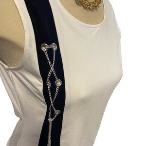 CLEO Sleeveless Top Size Medium Navy Blue Stripe with Chain on Right Front