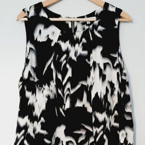 CLEO Split Back Abstract Black and White Sleeveless Top XL Petite