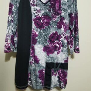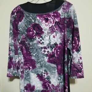 CLEO Tunic Top M petite Purple Floral Office Casual Knit Relaxed