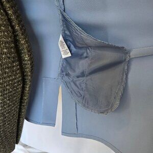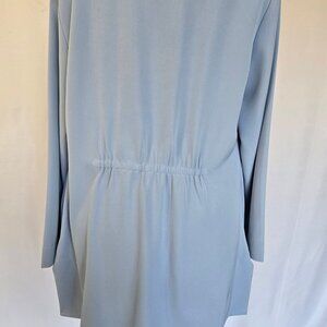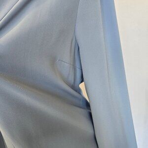 A beautiful drapey and feminine jacket in a pale dusty blue.
