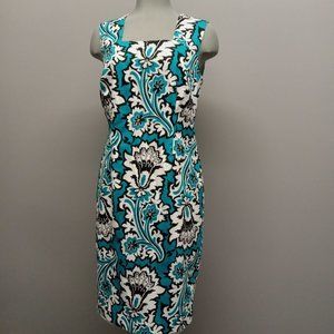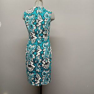 CLEO blue floral paisley print sleeveless cocktail party midi wiggle dress sz 10