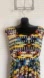 CLEO, colourful patterned mid length sleeveless dress round collar. Elastic at waist, dress has a sash which can be attached in the front or back. Polyester/Spandex mix. Colours are yellow/black/blue/green/creme/orange.