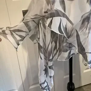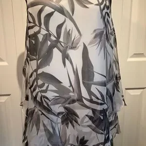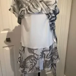 NWOT. Grey, black and cream asymmetrical top. Feminine and classy look. Fully lined to the waist. All edges finished. Size tag reads XS but definitely fits more of a small to a s/m.