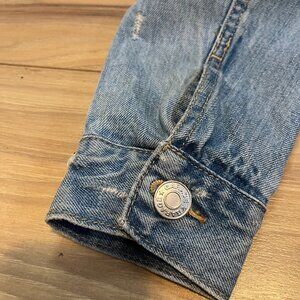 (CLO3)Garage Coupe Boyfriend Fit Distressed Denim Jean Jacket Women Size S Women
