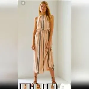 Gorgeous linen and rayon pull overhalter dress. Feels incredible on your skin.