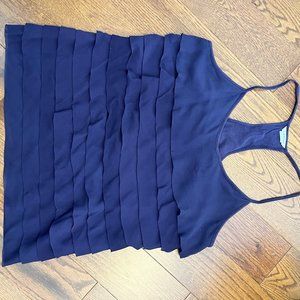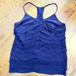 Size Small dark purple 100% silk CLUB MONACO tiered ruffle tank top / blouse; barely worn. Smoke free, pet free home. #clubmonaco #silk #shirt #tanktop #blouse