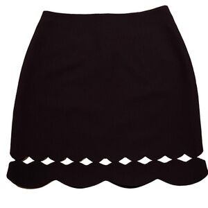 CLUB MONACO ATRINA NAVY SCALLOPED CUT OUT MINI SKIRT, This is a cute preppy solid navy cut out scalloped hemline mini skirt - high rise / high waist with a back concealed zipper fastening - lined -darted at waistline for a tailored touch - minimalist with a twist - preppy chic style with a cropped top or a blouse tucked int for a dark academia to a night out clubbing mini skirt. Fancy and cute for a first date or cocktail hour. Feminine and sexy yet mature and sophisticated. Elegante. Formal / party. Short length.