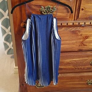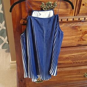 CLUB MONACO BLUE & WHITE PLEATED TANK TOP
