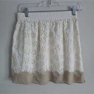 CLUB MONACO | Eyelet Skirt Cotton Silk Trim Cream Sz 2