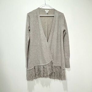 CLUB MONACO Grey Fringe 100% Cashmere Cardigan in Women's Size X-Small
