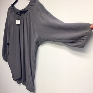 CLUB MONACO Helena Popover Silk Blouse Grey XS