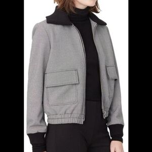 CLUB MONACO Houndstooth Knit Collared Bomber Jacket
