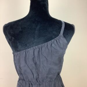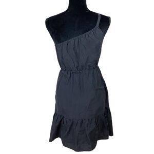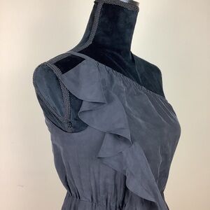 CLUB MONACO SILK BLACK ONE SHOULDER RUFFLED DRESS