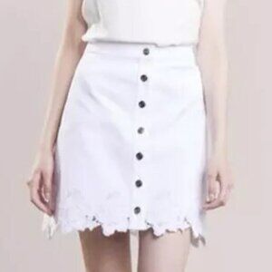CLUB MONACO Vidya Denim Feminine White Floral Hem Retro-buttons Skirt Size 00