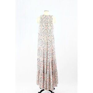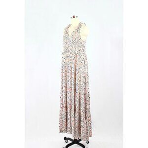 CLUB MONACO Whiite Printed Silk Crepe Ruffle Tiered A-Line Maxi Dress, Size 0