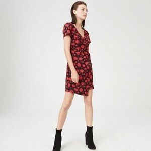 CLUB MONACO - Women’s Black & Red Esquinah Floral Wrap-Style Mini Dress, Size 10